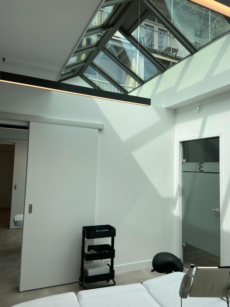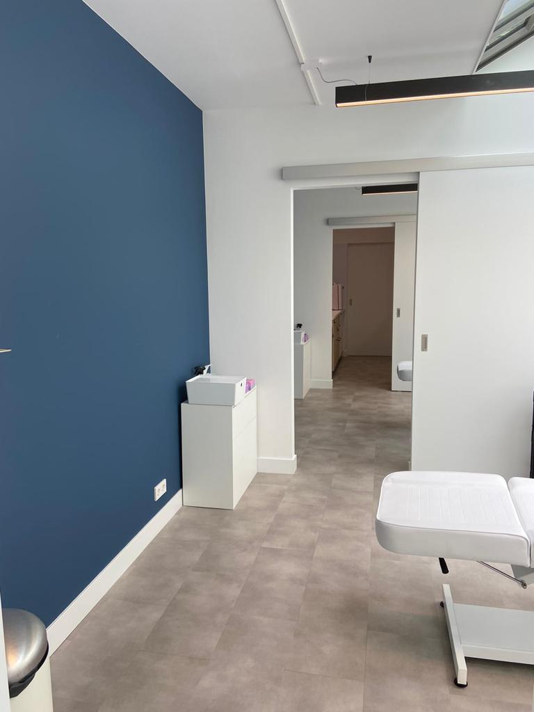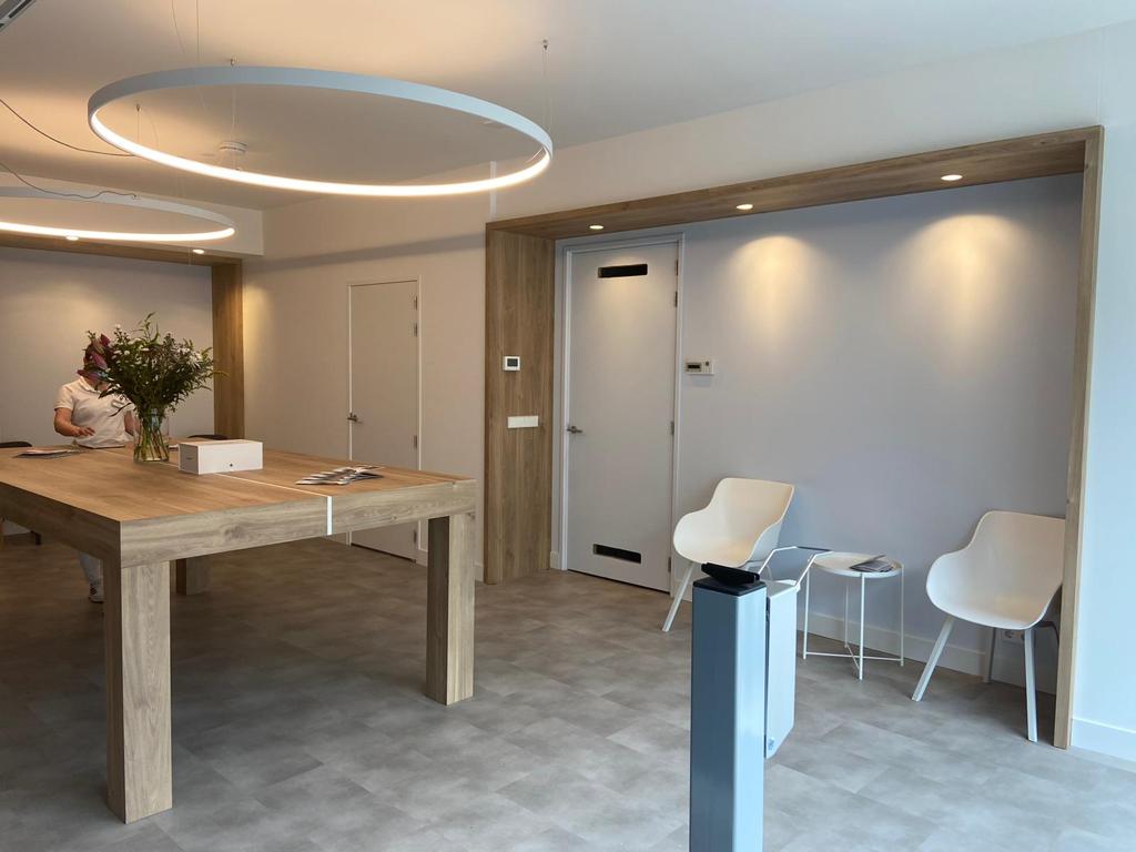 Deze huidige renovatie heeft daar verandering in gebracht. De begane grond van het pand is verhuurd aan PlusDental, waardoor deze verdieping nu is ingericht als praktijkruimte en we een winkelverbouwing hebben afgerond. We hebben scheidingswanden geplaatst voor de verschillende behandelkamers en de wachtruimte. Ook hebben we deuren, houten kozijnen en een toilet toegevoegd, inclusief tegelwerk. Het schilderwerk is netjes afgemaakt en we hebben ook een mooie PVC vloer gelegd. Tot slot hebben we de gehele praktijkruimte voorzien van elektra, het juiste sanitair en bijpassende leidingen en hebben we de plafonds nog aangepakt.
